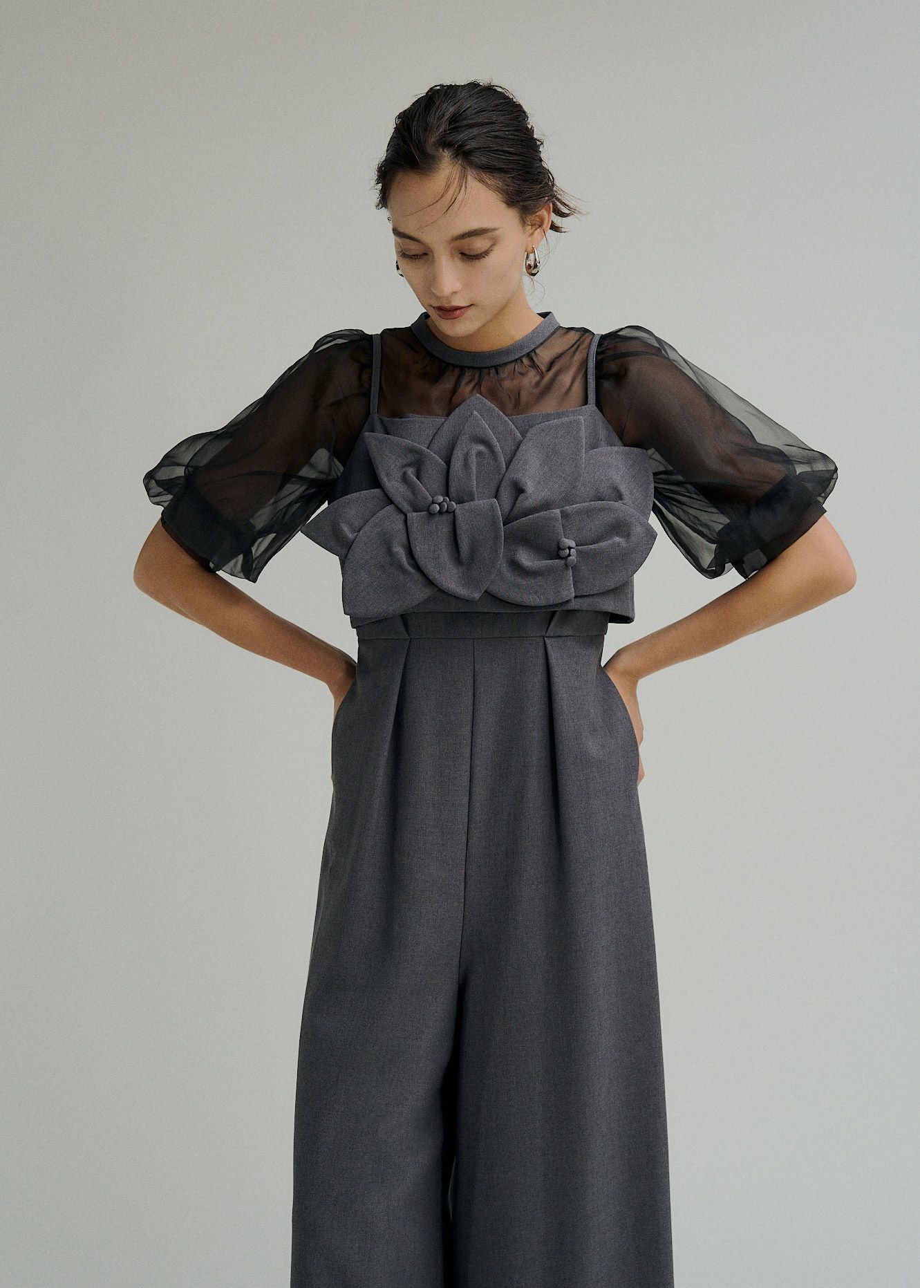大胆なフラワーモチーフがトレンディかつアイキャッチなビスチェセットオールインワンが登場。
